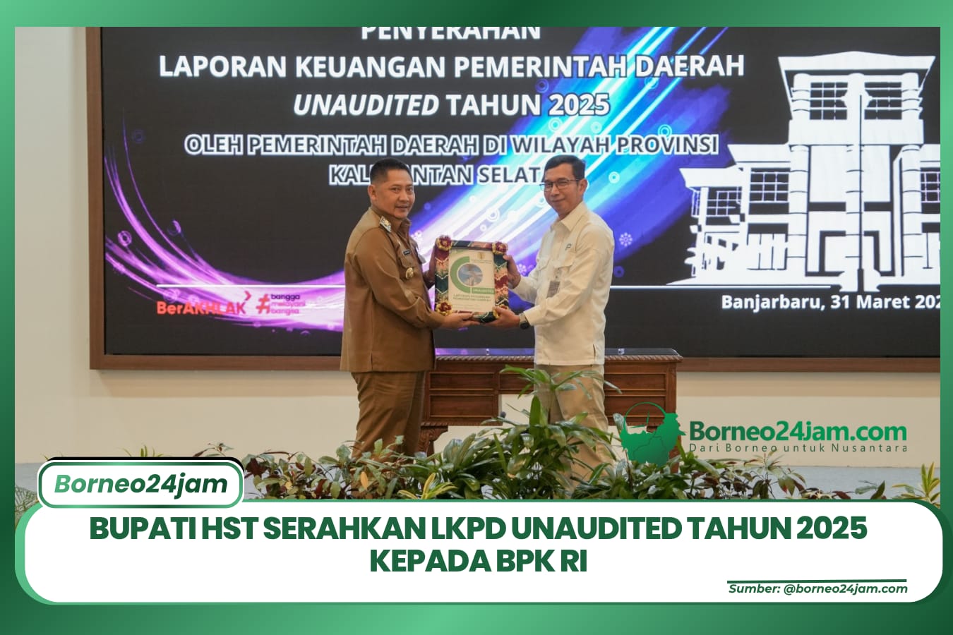 Borneo24jam.com,BANJARBARU – Bupati Hulu Sungai Tengah (HST), Samsul Rizal, menyerahkan Laporan Keuangan Pemerintah Daerah (LKPD) Unaudited Tahun 2025 kepada Badan Pemeriksa Keuangan Republik Indonesia (BPK RI) Perwakilan Provinsi Kalimantan Selatan, Selasa (31/03/2026), di Auditorium BPK RI Banjarbaru.