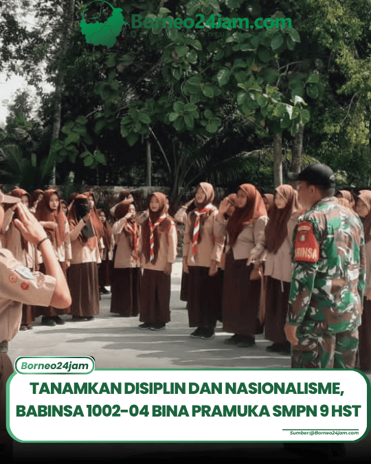 Borneo24jam.com,HULU SUNGAI TENGAH – Babinsa Koramil 1002-04/Labuan Amas Selatan, Sertu Slamet Hariyadi, melaksanakan kegiatan pembinaan Pramuka kepada para siswa SMP Negeri 9 Hulu Sungai Tengah, Sabtu (24/01/2026).