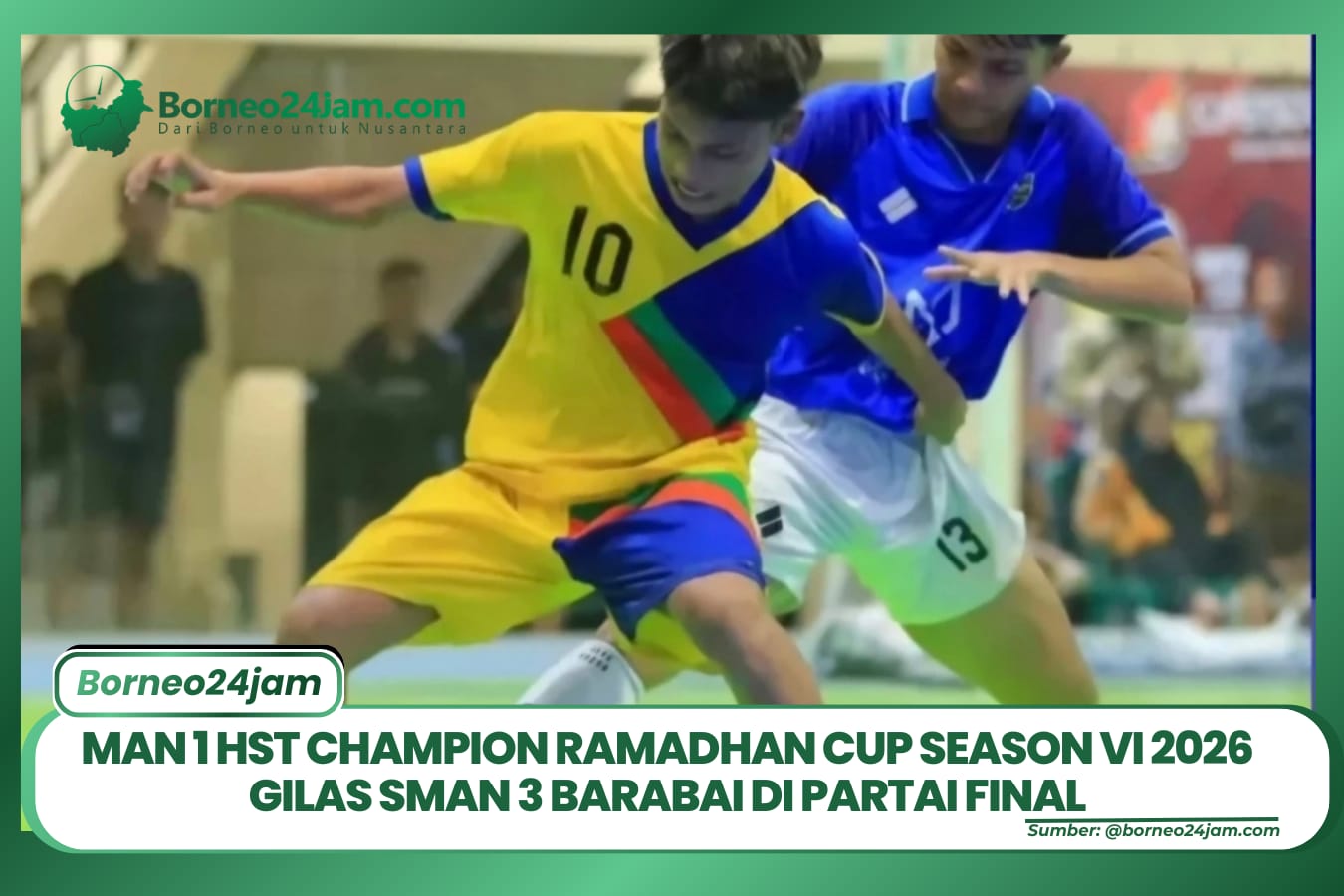 Borneo24jam.com,BARABAI – MAN 1 Hulu Sungai Tengah (HST) sukses keluar sebagai juara Turnamen Futsal Ramadan Cup VI 2026 kategori pelajar setelah mengalahkan SMAN 3 Barabai dengan skor tipis 2-1 pada laga final yang digelar di Gedung Olahraga (GOR) Murakata Barabai, Kamis (5/3/2026) malam.